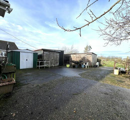 Outside The property has a decked area to the front with a fish pond and raised beds and ramp up to the front door. Driveway parking to the side leads to a concrete area with several outbuildings and a greenhouse. A gate leads to the land to the rear which is currently laid to grass with trees, while another gate leads to the final piece of land which is laid to grass paddock.