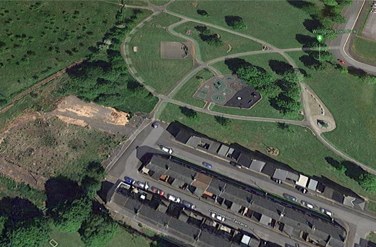 The site is located at the head of a cul de sac on Kensington Terrace, off Willington High Street: