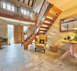 Large converted barn with exceptional variation of modern, social spaces and cosy reception rooms. Full height vaulted entrance hall.. Accommodation across three floors (Inc. garaging, totalling 3,239 sq.ft). Mature grounds. Double garage. Viewing a must!