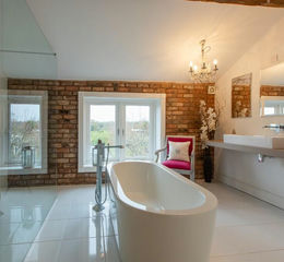 On the first floor sits the superb principal suite. With its beamed ceiling, contemporary four piece ensuite, dressing room and views out over the garden and the open countryside beyond, it's the perfect retreat for rest and relaxation.