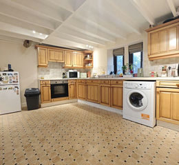 13' 5'' x 11' 9'' (4.09m x 3.58m) Fitted with some base and wall units, complementary worktop surface, sink and drainer with a mixer tap above, Zanussi electric oven and grill, electric hob, tiled splashbacks and extractor above, plumbing for a washing machine, space for a large dining table and fridge freezer, four uPVC double glazed windows, radiator, stairs to the first floor.