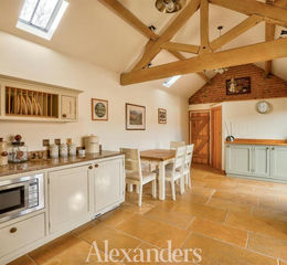 Accommodation: - To the ground floor is a spacious central entrance hall with stairs rising to the first floor. There is access to the guest cloakroom, a handy boot room to the rear, and a delightful and cosy sitting room which benefits from French doors to the garden and a brick fireplace with inset wood-burning stove. The charming country kitchen boasts granite work surfaces and integrated appliances. The vaulted ceiling is a particular feature, creating a light and airy atmosphere.