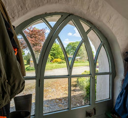 Two walk-in sash windows with commanding panoramic views of the countryside