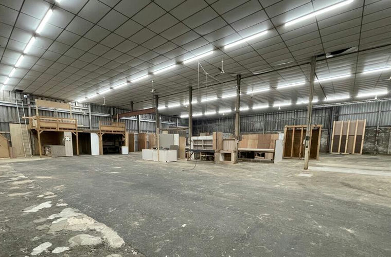 Internally the property consists of an open workspace with steel support beams running down the centre. A suspended ceiling covers the whole floor space and measures approx. 5.42m to its underside. Ground floor office and staff amenities are provided.