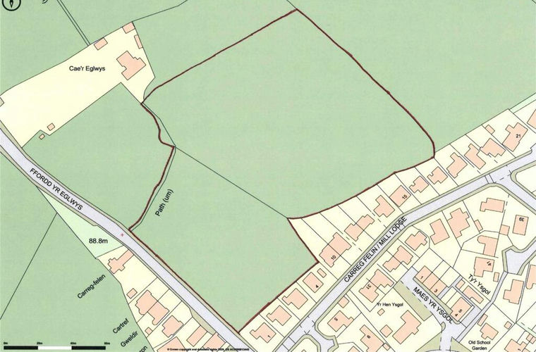 From the Britannia Bridge turn right onto the A5025, at the roundabout take the second exit remaining on the A5025. In approximately half a mile turn right directly before Pentraeth Automotive. Continue along this lane and at the T-Junction turn right, continue around a sharp left hand corner, up the hill and the land is on your left hand side before Mill Lodge Estate.