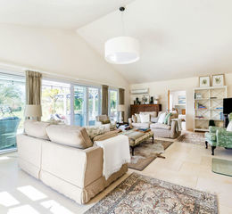 The garden landscaping is exceptional, with abundantly planted beds around the house, mature hedging, and long established wooded and hedgerow boundaries. A spectacular deck spans the entire rear elevation of the house with a veranda and separate pergola providing covered dining and entertaining space leading directly from the entrance hall, sitting room, dining room, and the study.