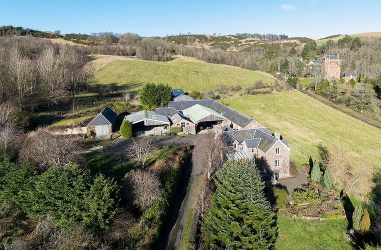 Upper Mains of Kinnaird is a former farmhouse constructed of stone with a slate roof. The main house is complimented by partially converted steadings and a range of quality outbuildings which include an open shed, a machine store, byre, parlour, garage, modern machine store, and a trailer shed.