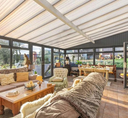 Very spacious and welcoming conservatory entrance, recently fitted double-glazed windows and French doors, tiled floor, radiator, polycarbonate roof, double door access through to lounge, door to:
