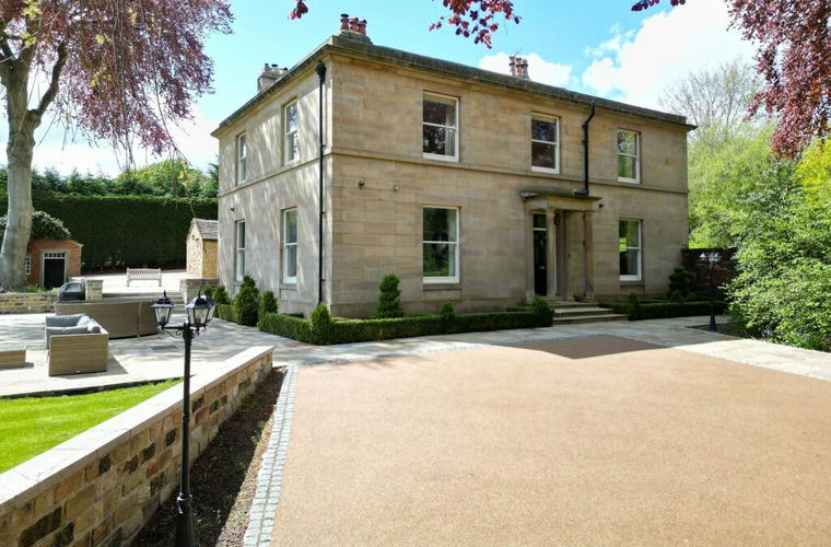 The driveway sweeps around the front of the home with a fabulous resin surface. This driveway leads to the main reception area before the front door providing a large amount of parking and turning space and the driveway then leads off down to the car parking area where there is the garage block.