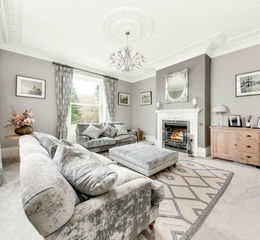 As the photographs indicate, this is a fabulous room. The light and bright room enjoys two large period sash windows with original period shutters that give a fantastic outlook over the property’s gardens and views beyond. The sitting room has a wonderful ceiling rose with chandelier point, decorative coving to the ceiling, and beautiful period style fireplace with outstanding broad open fire grate.