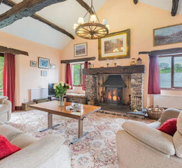 Classic wooden cabinetry lends a traditional feel, complementing the home's peaceful, rural surroundings. Enjoy casual family meals together at the dining table, warmed by the Stanley multi-fuel cooker that sits handsomely in the recess.