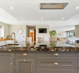 The showstopping living kitchen comprises an in-frame style range of handmade painted kitchen units by Laurel Farm Kitchens Ltd with a contrasting central island which has a double Cosmos black granite work surface with cathedral edging and sold oak surfaces providing finishes to some edges. This incorporates a breakfast bar, there is also a sink and hob within the central island. A porcelain sink is also found in the kitchen along with integrated Siemens appliances which include induction hob, extractor (in central island), dishwasher, two ovens. There is a built-in table and window seats. Patio doors are offered out to the rear patios, this fantastic room is open to the family room where there is a large bi-fold door which can be open to the rear patio. The layout lends itself to entertaining both indoors and out. This room also has a point for a television on the wall and a contemporary style fireplace.