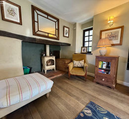 Two double glazed window to rear, multifuel burner in fireplace with wooden mantel, uPVC double glazed French Doors to garden, door to: