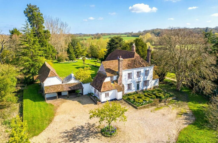 This fine house, is listed Grade 2* and is of exceptional heritage and architectural significance. The estate was formerly in the ownership for four centuries of the Capell family, the Earls of Essex. It is a heavy timber framed 7 bedroom home with high ceilings, impressive reception rooms, large sash windows having wonderful views across the picturesque and tranquil grounds and river valley. Along with the impressive house, the estate enjoys two large barns, with planning permission to convert to residential properties, a detached three bedroom cottage (a barn conversion), a range of other outbuildings, a Norman Motte Castle and moat (Scheduled Monument) and the grounds including a spring fed lake, together with about 300 yards of Stebbing Brook and extensive woodland areas. Early viewing of this historic country property in an idyllic setting is highly recommended.