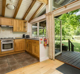 Timber Lodges - The four luxury timber-framed lodges are all identical in size and mirrored in layout. They have been built on eco-friendly principles incorporating flax and recycled newspaper for insulation, plant oil-based paints, water conservation and energy saving lighting. Douglas fir cladding has been used on the outside which has been protected with eco-friendly paints so that, the lodges blend into with the woodland environment. Light and airy in the summer, warm and cosy in the winter, they have a galleried roof and wooden oak floors throughout. All the lodges have WiFi.