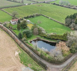 The land is thoughtfully arranged into two relatively level paddocks, enclosed by established hedging and stock-proof fencing. The first paddock, extending to approximately 1.6 acres, enjoys frontage to the A44 and lies to the front of the house. The second paddock, approximately 1.8 acres, is accessed independently from the courtyard and stable area and includes an additional pond and a charming wooded area to the east.