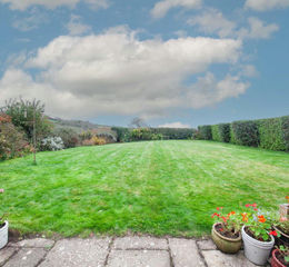 The front garden is attractively planted with mature shrubs, while to the rear, a level lawned garden enjoys a sunny southerly aspect and wonderful open views across the communal paddocks and woodland. The garden includes a patio adjoining the house and a large summer house, offering an ideal space for outdoor entertaining and relaxation.