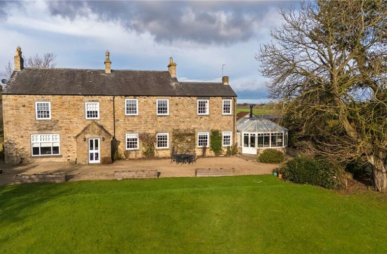 Kimblesworth Grange Farm is an impressive Grade II listed Georgian farmhouse set within approximately 21 acres of beautifully maintained parkland gardens, offering a rare combination of period character, modern enhancements and an exceptional rural setting. The property has been carefully maintained and improved by the same family for over thirty years and provides generous and flexible accommodation together with extensive grounds, stables and a range of useful outbuildings. Approached via a private half-mile driveway bordered by lawns and mature hedging, the property is accessed through newly installed electric sliding gates which lead to the house and surrounding grounds. The setting is particularly peaceful, surrounded by open countryside with uninterrupted views across the surrounding fields and with no overlooking neighbouring properties. Within the grounds there is a large lake which attracts an abundance of wildlife throughout the seasons, together with areas of woodland and beautifully planted gardens which come to life each spring with snowdrops, bluebells and daffodils.