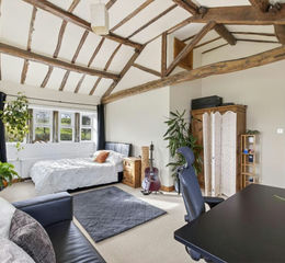 This being closest to the bedroom to the principle bedroom has a bank of mullion windows overlooking the property’s gardens and is once again of a double size. It has two beams.
