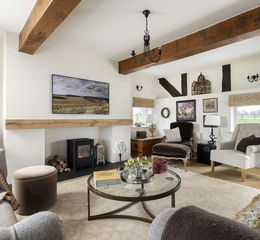 The heart of the home is the magnificent double-height dining hall, an exceptional reception space defined by exposed structural timbers and full-height glazing that opens directly onto the terrace and gardens beyond. Bathed in natural light, this striking room immediately conveys the scale and craftsmanship of the original barn, while a galleried landing above enhances the sense of openness. It is a superb space for entertaining, yet equally welcoming for everyday life.