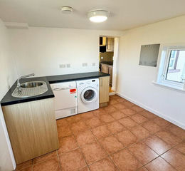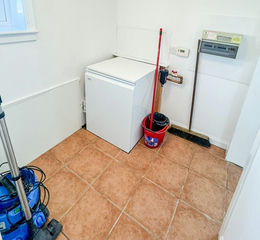 Ceramic tiled floor. Plumbed for washing machine. Stainless steel sink with side drainer. Floor units with storage. Window to side. Access to boiler room and then into wc. Central heating radiator. Access to kitchen diner.
