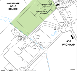 DIRECTIONS: Please see Location Plan and use postcode PO17 5AT and What3Words - what3words.com/elections.pursuing.riots. The land at the Property adjoins the Swanmore Golf Centre.