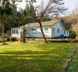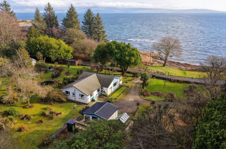 Kildonan is a delightful, detached bungalow- style home in a situation of great natural scenic beauty. The house occupies a wonderful sheltered ‘amphitheatre’ with surrounding landscape formed by steep-sided hills and woodlands underplanted with rhododendrons and from the sheltered position there are sublime aspects out across the seascape of the Kilbrannan Sound towards the land mass of the island of Arran adjacent.