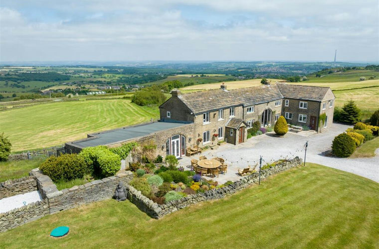 Set in an exceptional rural position with commanding panoramic views over the Holme Valley and beyond, Far Mount Farm is a beautifully restored and significantly extended five-bedroom detached farmhouse, set within approximately 13 acres of gently rolling pastureland, with a further 22 acres available by separate negotiation.