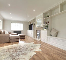 Fresh and modern with feature media shelving and seating area, fireplace housing electric fire, bay window to front and separate window creating an abundance of natural light.