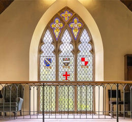 Inside, a welcoming Entrance Lobby leads to a mezzanine gallery overlooking the space below - a stunning, open-plan area where coloured light filters through stained glass onto the original wooden floors. The ground floor also offers a well-equipped Kitchen, WC, a flexible Bedroom or Study and 3 Reception Rooms, including a particularly grand space within the former chancel.