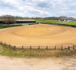 Exceptional 5* Equestrian Facility benefitting from a vast range of facilities including; 4 Furlong all-weather gallop; 3 Large Horse walkers; stabling for over 40 horses with room for expansion. Isolation and vetting bay; indoor/outdoor manege; loose schooling arena.