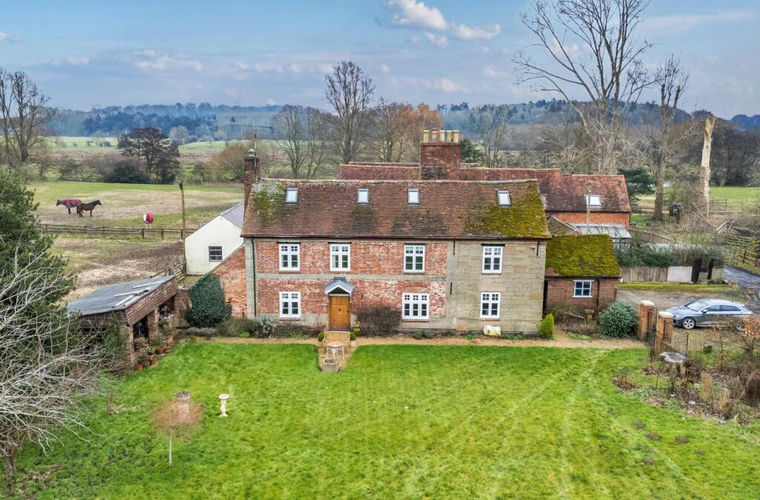 A spacious five bedroom detached farmhouse sitting on a 3.36 acre plot, with paddocks extending to 2.67 acres or thereabouts, outbuildings, seven stables, tack room, work shop and formal gardens. Approached via a private drive, the property offers substantial living accommodation over three floors and benefits from far reaching countryside views.