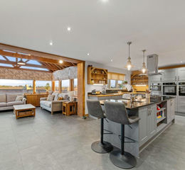 The outside entertaining area has an open plan living/dining/kitchen area with a shower room off and bi-fold doors to an outdoor kitchen. Being fully equipped with a wood-fired pizza oven, sink, fridges, freezer and top-of-the range BBQ/Grill.