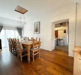 An open doorway from the reception hall leads into an inner hallway, with doors flanked by glass panels leading into the rear garden. The room has a continuation of the same flagstone floors. An open doorway leads into the dining room which has a picture window to the side and a further window looking into the courtyard. The dining room has exposed wooden floorboards plus a loft inspection point.