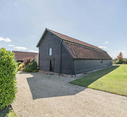 SUFFOLK PARTY BARN: A striking timber framed (formerly agricultural) barn fitted with a bar and open plan party/entertaining area, well suited for large scale family events and entertaining. The barn also has large doors capable of providing vehicular access if so desired - and could therefore suitably house car collections, etc.