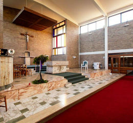 Set within an elevated position, the building presents a bold and distinctive presence, characterised by its dramatic brickwork, strong geometric forms, and iconic bell tower element. The design exemplifies the powerful Modernist ecclesiastical style for which Coia is celebrated, making this a rare and highly desirable asset for developers, investors, or owner-occupiers seeking a landmark conversion project.