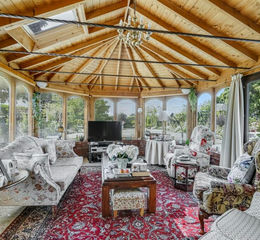Conservatory/Sun Lounge - 6.10m x 4.32m approx (20' x 14'2 approx) - This large living additional area has double opening, double glazed French doors leading out to the gardens, double glazed windows to three sides, two radiators, pine ceiling with two Velux windows and a tiled roof, exposed brickwork to the walls, three feature metal tie bars, two radiators and tiled flooring.