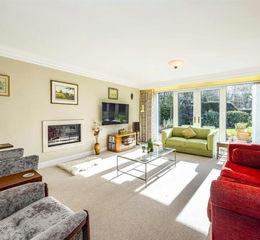 - Superb lounge with contemporary recessed fireplace and views across the rear gardens
