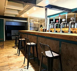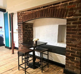 The large bar servery has non-slip flooring, part brick exposed walls and beamed ceilings.