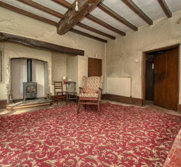 The characterful farmhouse offers an exciting renovation project with the opportunity to create a distinctive rural property. It presently comprises 4 bedroom accommodation, including a kitchen, living room, dining room, scullery and bathroom on the first floor, as well as a cellar and attic rooms.