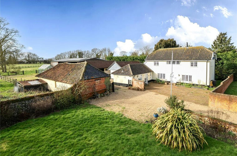 This wonderful property is tucked away in a private setting within the village of North Lopham. It sits behind the main street down a gravel driveway and on arrival greets you with a characterful barn conversion as the main house, paved walled courtyard, parking area and gardens. There are numerous outbuildings and land extending to approx 2.58 ha/ 6.37 acres. Here is a wonderful opportunity for anyone looking for an established equestrian property, or with this much space and land around you, may be suited to a number of other uses.