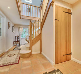 Upstairs the rooms all enjoy vaulted ceilings, with the volume of the original barn space really expressed. The central landing is both bright and impressive, has full width window to the front and a velux window. The solid oak balustrade is a lovely feature. The family bathroom to the rear has an airing cupboard containing pressurised hot water cylinder and is well fitted with a corner shower enclosure, freestanding style bath, WC, basin and has a tiled floor and velux window above. There are three good sized bedrooms upstairs each again enjoying the vaulted ceilings with exposed original timbers, windows mainly to the front and sides and velux roof windows to the rear elevation.