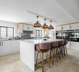 • Bespoke, state-of-the-art kitchen and breakfast room, featuring multiple ovens, central island, and dual-aspect glazing