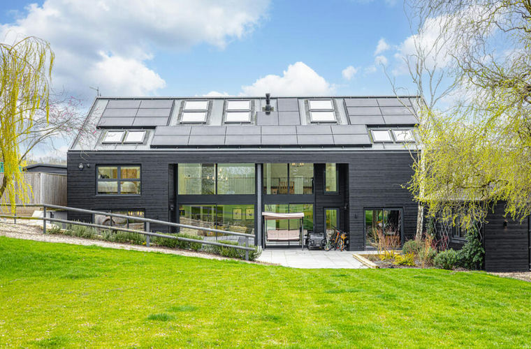 Externally, the property has been finished with Marley Eternit Cedral boarding in a black wood effect finish, creating a bold yet sympathetic appearance that complements its rural setting. The roof has been designed with a high-performance warm roof system, incorporating a 124mm standing seam roof panel system, delivering excellent weather protection and thermal continuity across the entire roof plane.