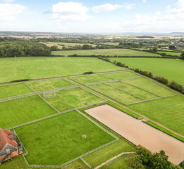box, solarium, hay store and a WC. At the rear of the stables is ample space for a horse lorry. Adjacent to the courtyard is the Monarch horse walker and Lunge pen. All weather tracks then lead to the the paddocks and menage, the paddocks are all well fenced.