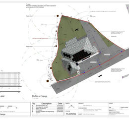 The site is currently a mix of open ground and former garage bases, the land sits behind Lanchard Rise with a natural tree line to the rear. The approved plans include a considered drainage design, well spaced plots, and a layout that makes the most of the site’s privacy and greenery.
