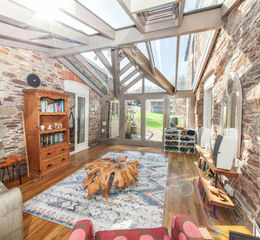 The entrance to the property is through a delightful glazed sunroom which links the barn buildings together, creating a wonderful light-filled space overlooking the gardens and providing an impressive introduction to the home.