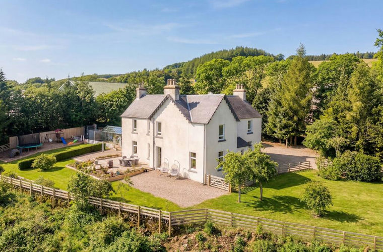 Outside, the grounds are every bit as appealing as the house itself. Sweeping lawns, mature trees and established planting create privacy and a lovely sense of seclusion, while the productive orchard, areas of ancient woodland and natural burn with waterfalls give the setting real depth and beauty. A patio beside the house provides an attractive spot for sitting out and enjoying the surroundings.