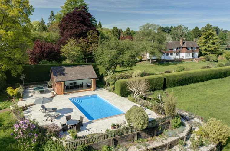 - Landscaped gardens & paddock totaling 3.32 acres. Swimming pool & pool house. Stables. Outbuildings & greenhouse. Ground source energy
