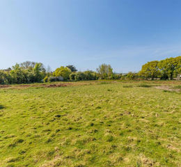 east (the largest which has laterally been a wildflower meadow. A smaller field to the east had glasshouses and polytunnels, (with two dilapidated glasshouses remaining).